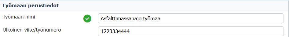 Lisää asiakkaan tietoihin työmaalle “Ulkoinen viite/työnumero” -kenttään asiakkaan toivoma ylätason viite.