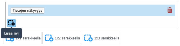 Yhteen osioon voi laittaa myös useita tietoja, tällöin ei klikata suoraan vaaleansinistä aluetta, vaan punaisen roskakori-napin vieressä olevaa nappia: