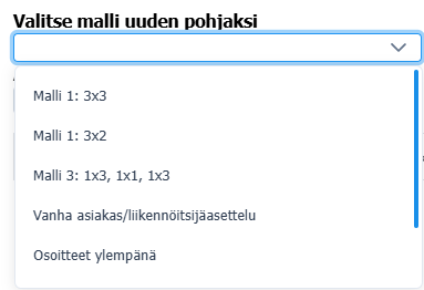 Valitse malli uuden pohjaksi -kohdassa voi alasvetovalikosta valita jonkin valmiin pohjan: