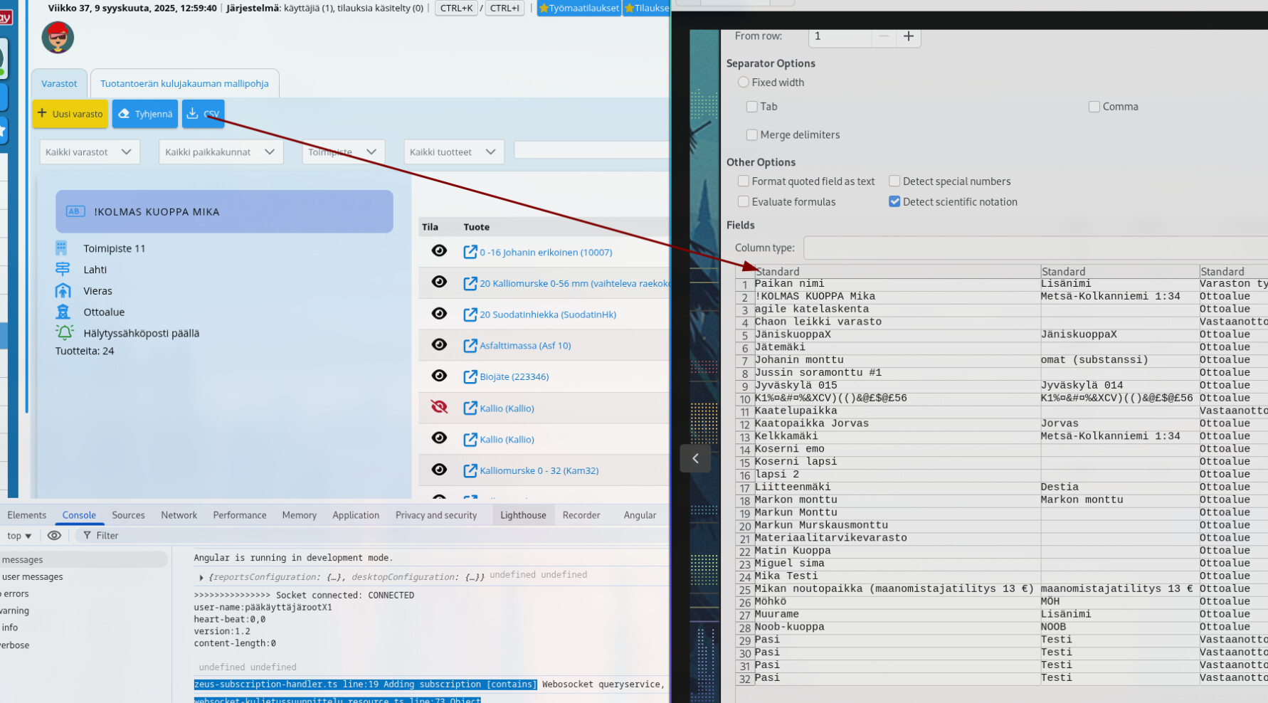 - [Uusi] Varastojen hallinta: Lisätty CSV-raportin lataamisnappi.