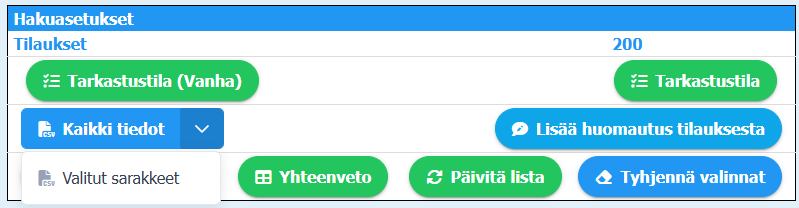 - [Muutos] Tilausten lista: Muutettu CSV-nappi monivalinnaksi.