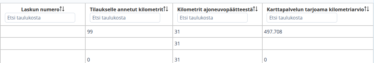- [Uusi] Tilausten lista: Lisätty kilometreille sarakkeet.