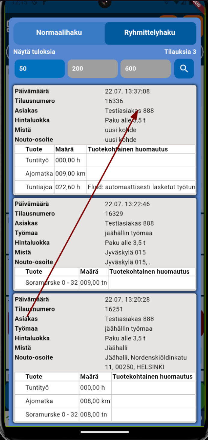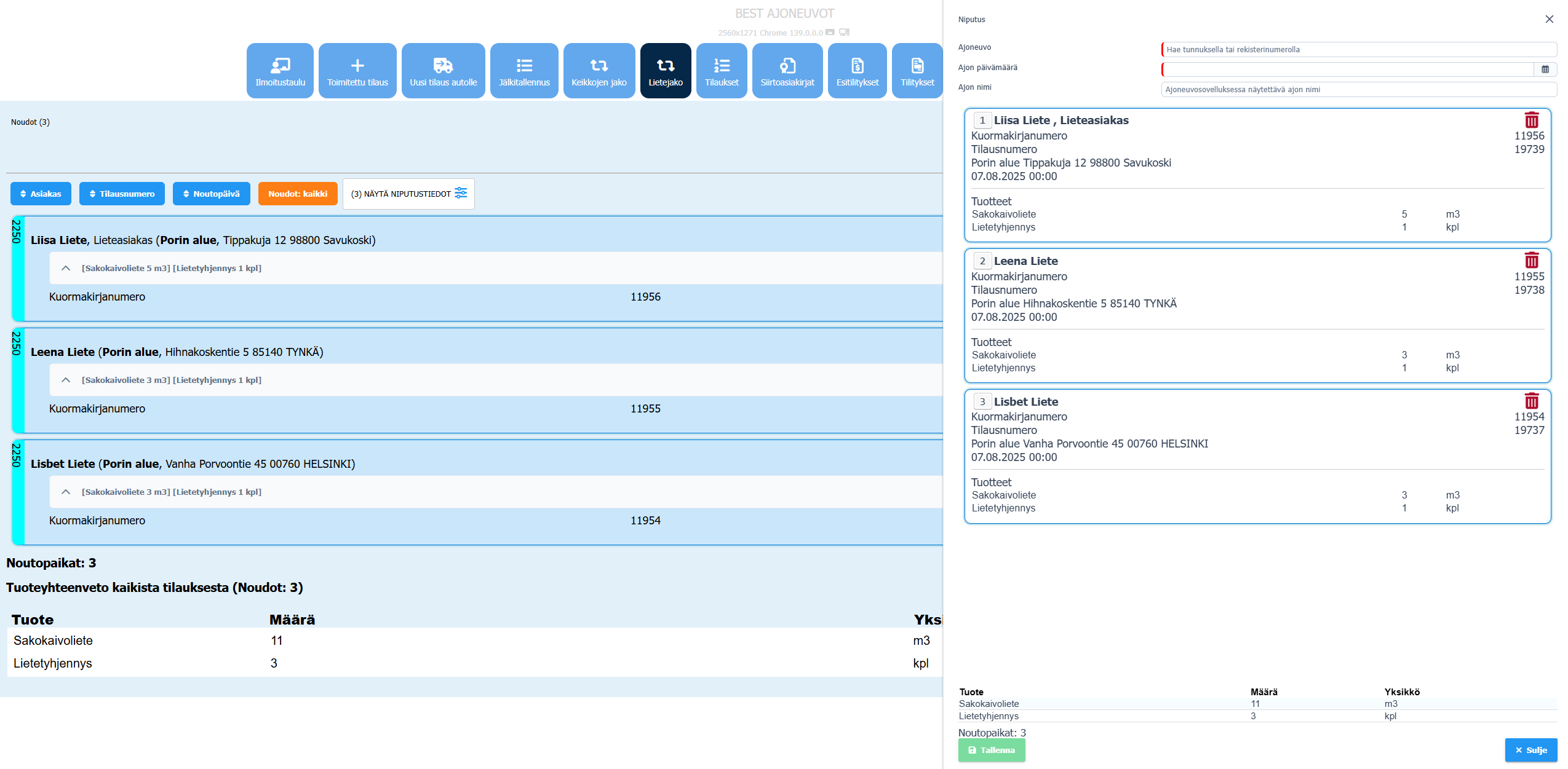 - [Uusi] Kiviaines, Jätekuljetus, Maansiirto, Yleisajo: Lisätty “Järjestä noutoajan mukaan” -painike.