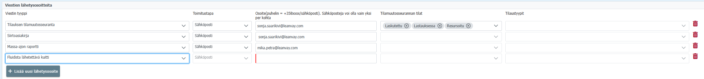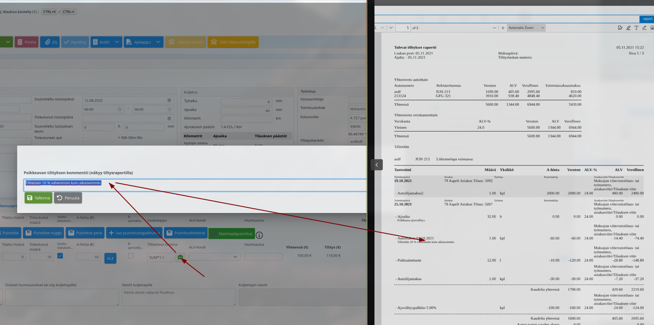 - [Muutos] Tilausten hallinta, Siirtoasiakirja: Lisätty tarkastuslistalle kiinteistötunnus, kun kyse lietekuljetuksesta (eli keikka ajettu Fluidin lietekuljetusprosessin kautta).
