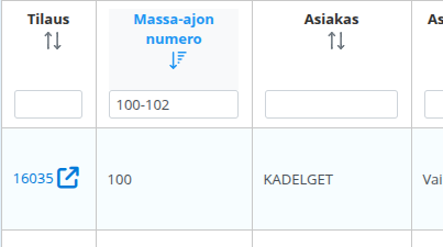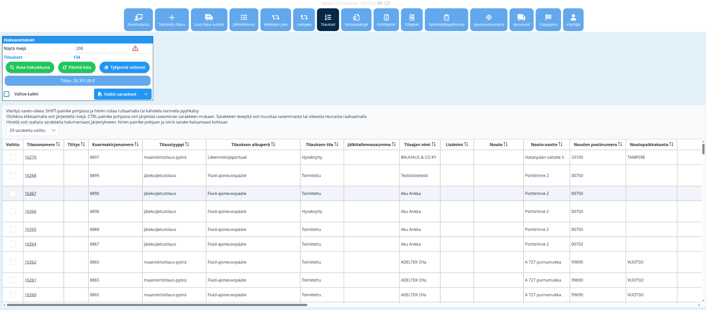- [Uusi] Tilausten hallinta: Lisätty kilometrisarakkeita sekä Massa-ajon numerolle sarake.