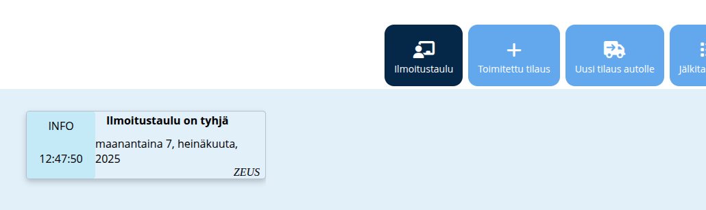 - [Muutos] Työmaatilaukset: Zeuksesta voi lähettää aiemmin ajetun ja lopetetun varauksen uudestaan autolle, kyseinen varaus tulee uudelleen näkyviin Fluidissa.