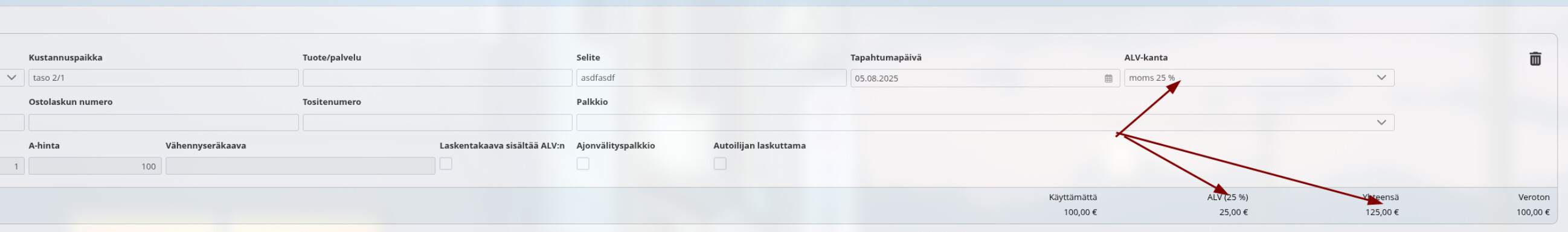 - [Muutos] Laskutus, Esitilitys: Tilitysvähennystä luotaessa ALV-kannan muutos muuttaa näytettävän prosentin heti, mutta laskee ALV:n osuuden vasta kun painetaan Tallenna-nappia.