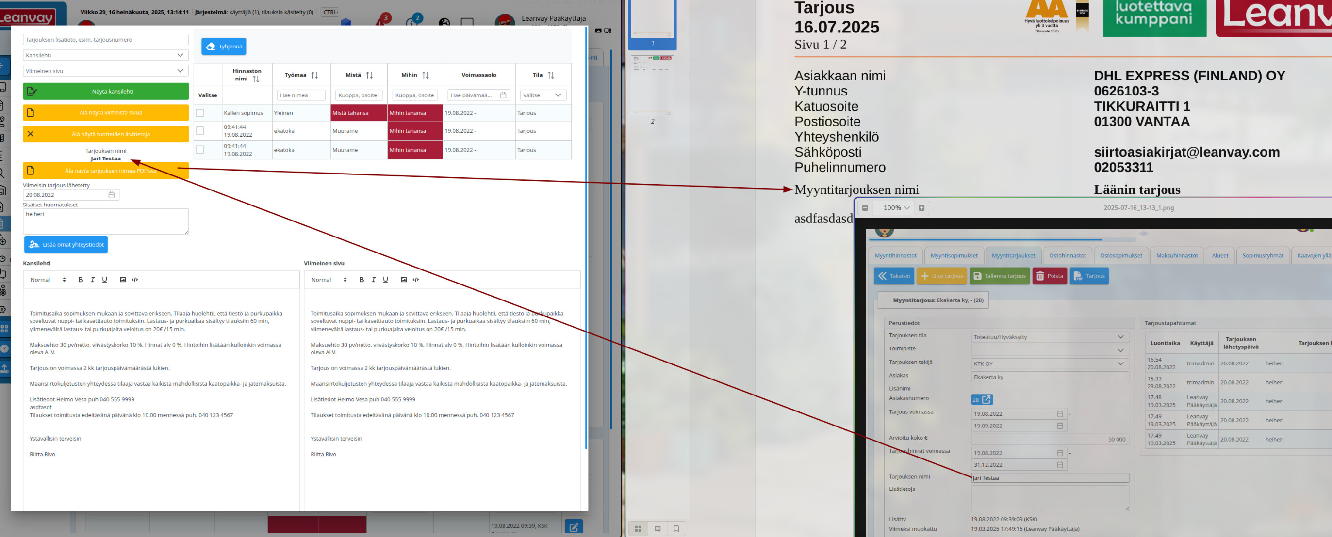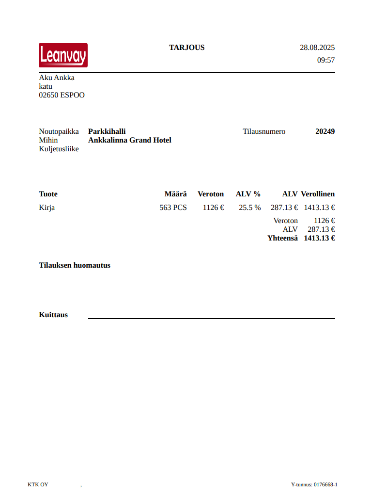 - [Muutos] Tilausten hallinta, tilauksen muokkausnäkymä: Lisätty mahdollisuus luoda “Tarjous”-tekstillä oleva PDF.