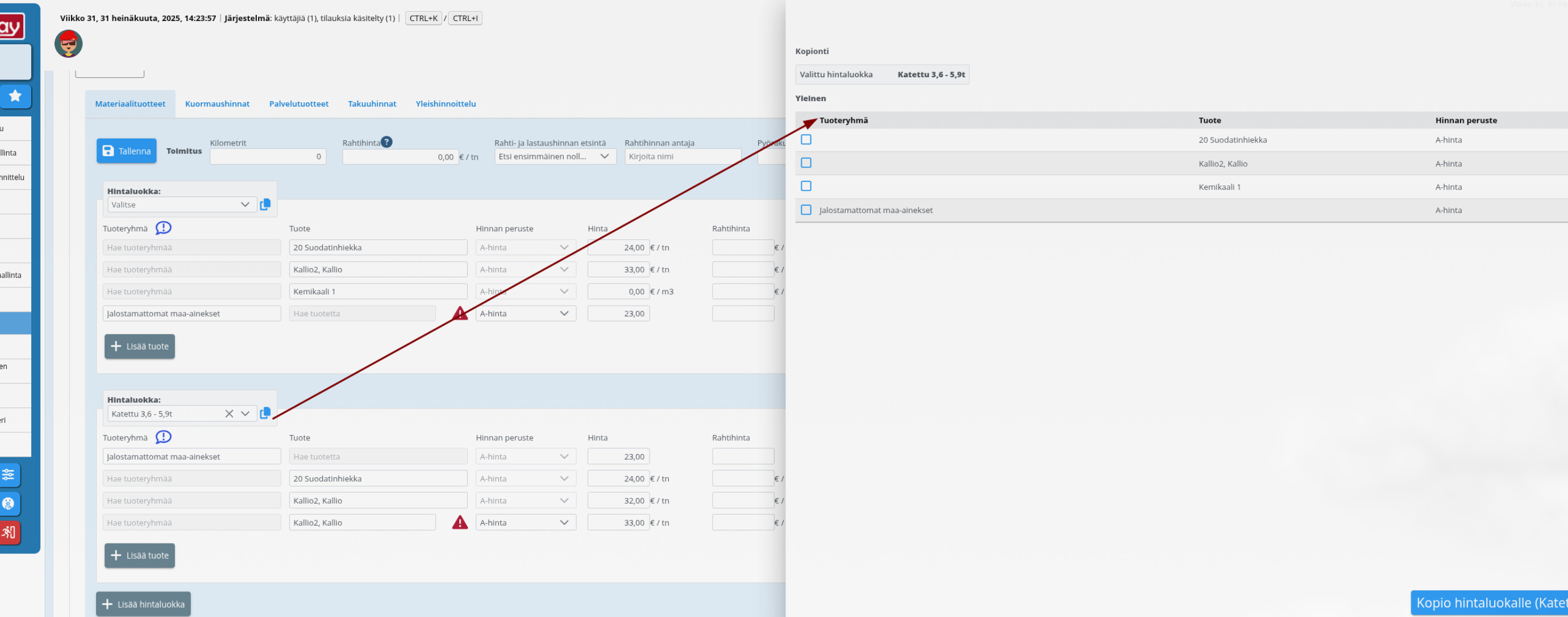 - [Uusi] Hinnastot: Lisätty mahdollisuus kopioida rivejä hintaluokkien välillä. Ohje: Hintaluokan hintojen kopioiminen toiselle hintaluokalle