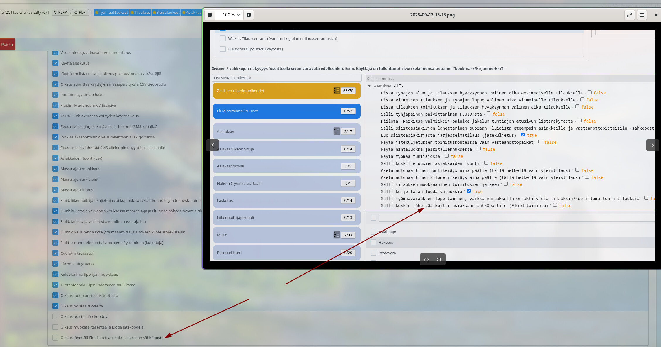 - [Muutos] Asetukset, Käyttöoikeuksien hallinta: Siirretty käyttäjän takaa Fluid-asetukset käyttöoikeusryhmiin. Samalla piilotettu käyttäjän takana olevat Fluid-oikeudet.