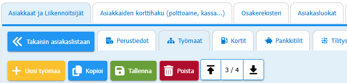 - [Muutos] Perusrekisteri, Asiakkaat, Työmaat: Muutettu muokkausnäkymässä olevaa selailua (seuraava/edellinen).