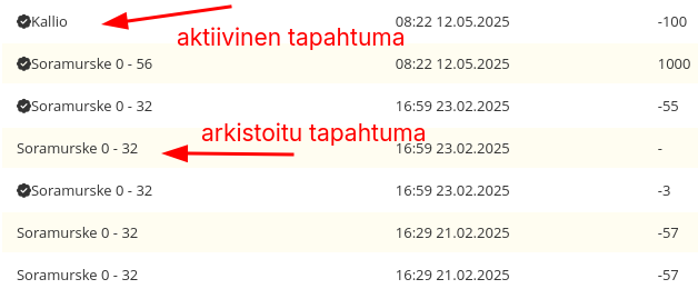 - [Uusi] Varastojen hallinta, varaston muokkaus: Lisätty varastotapahtumiin “Hae tapahtumien historia” -nappi, joka merkitsee ikonilla voimassaolevat tapahtumat. Lisätty myös “Hae tapahtumat” -nappi, joka päivittää tapahtumalistan. “Tyhjennä”-napilla saa kaikki tapahtumat näkyviin.