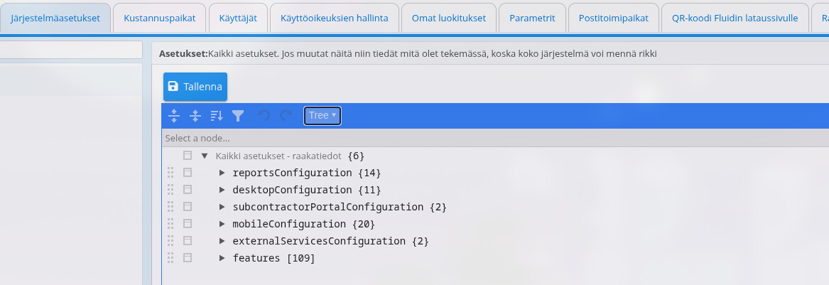 - [Uusi] Asetukset, Järjestelmäasetukset, Kaikki asetukset - raakatiedot: Lisätty Tallenna-nappi. Huom: Ei suositella oikeuksia Asetukset-osioon kuin järjestelmän ylläpitäjälle.