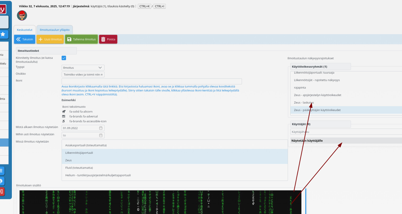 - [Uusi] Viestintä, Ilmoitustaulun ylläpito: Lisätty mahdollisuus rajoittaa ilmoituksia erilaisille ryhmille / käyttäjille.