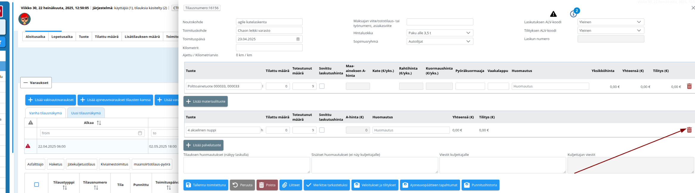 - [Muutos] Toimitettu tilaus: Mahdollistetaan myös ainoan tuoterivin poisto.