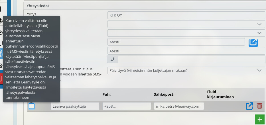 - [Uusi] Perusrekisteri, asiakkaat: Lisätty asiakkaalle viestien lähetysosoitteisiin “Fluidista lähetettävä kuitti” -valinta.